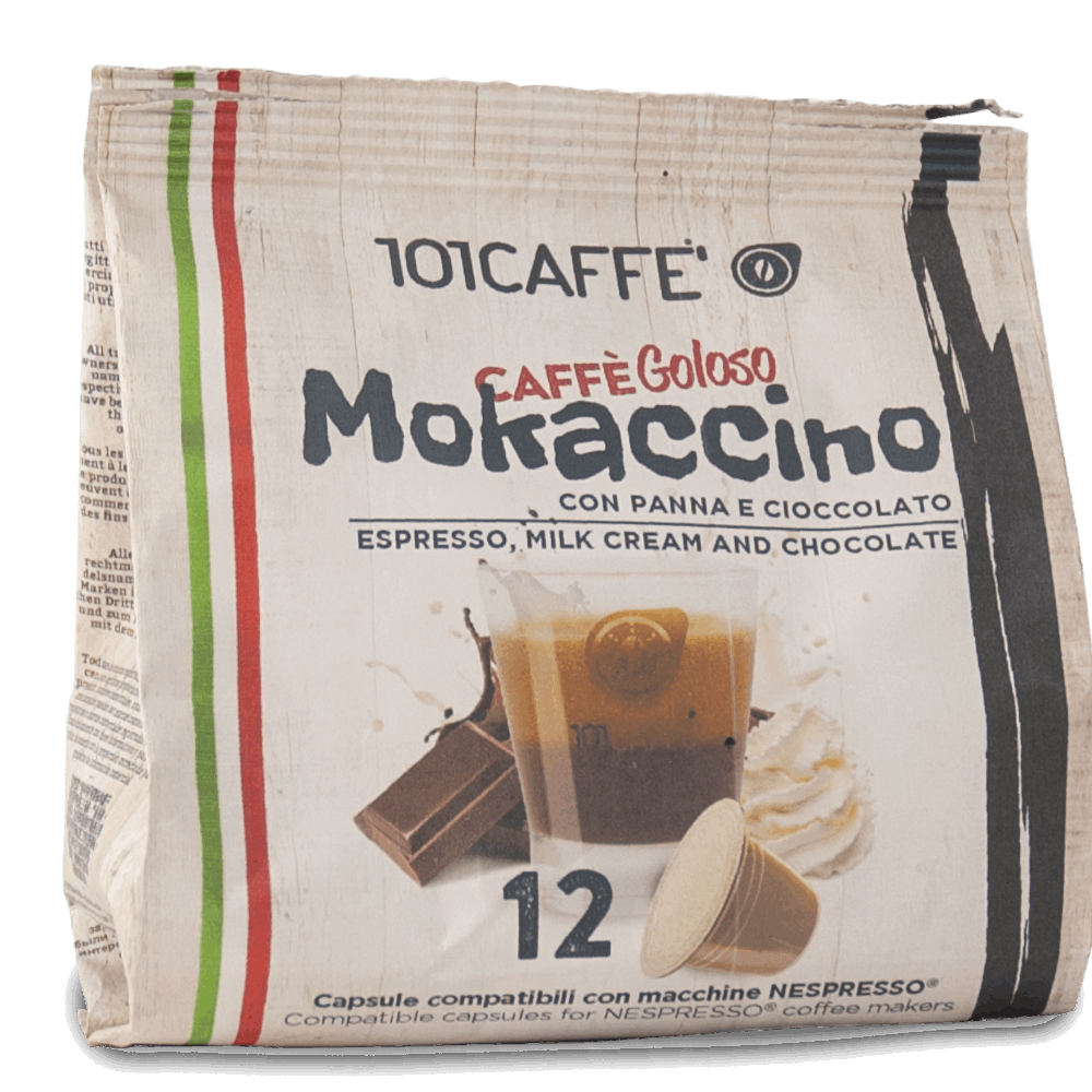 Le Mokaccino de 101CAFFE’ est un cappuccino en petit format. Le goût de crème et de chocolat le rend encore plus délicieux. Parfait pour accompagner vos moments de gourmandise. Pour système Nespresso.